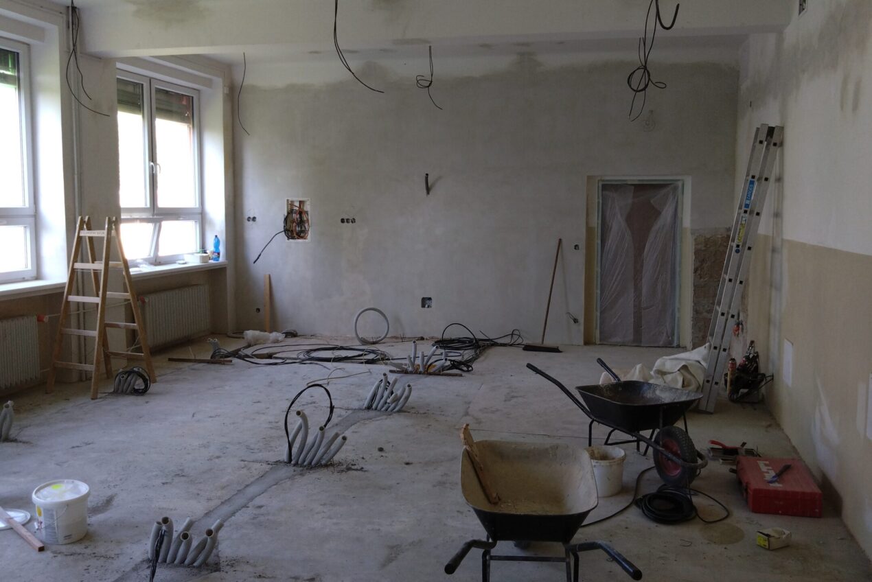 Stavební práce v obou učebnách jsou provedeny, v současné době probíhá montáž interiérového vybavení. V rámci projektu dochází ke snížení způsobilých výdajů projektu – přímých i nepřímých vlivem výsledku výběrového řízení na vybavení nábytkem, je administrována změna projektu.
